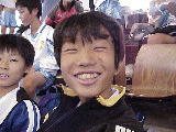 ひで (試合後すぐに鬼ごっこをしていたのを捕まえて) 6年の試合なのに出場でき、シュートを止められたので 良かった。 |